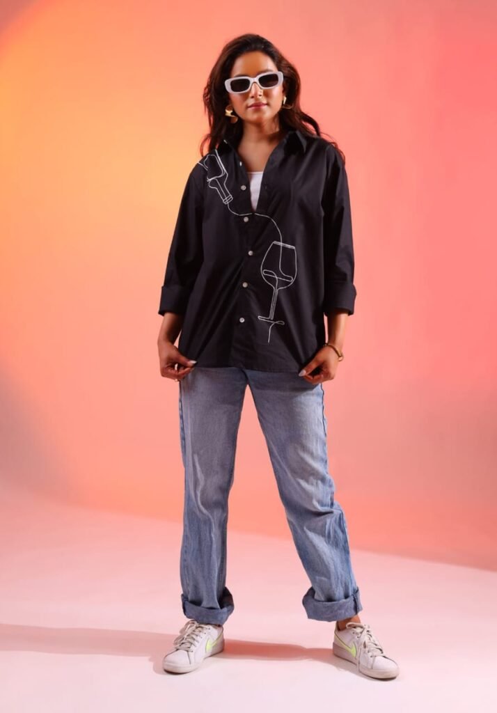 Black Wine Printed Shirt (Women)